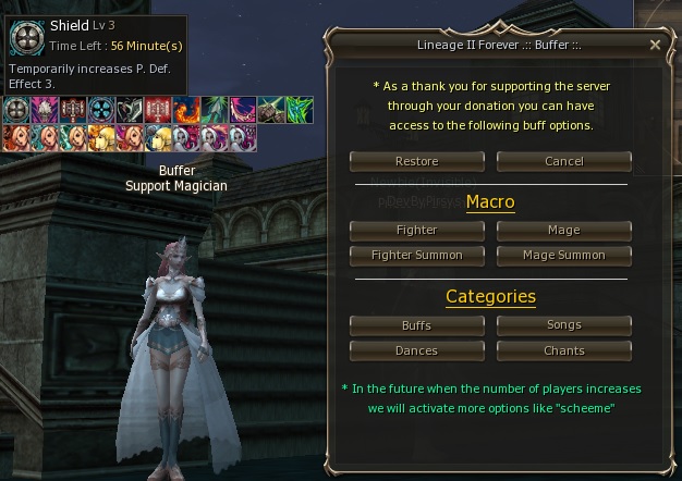 Lineage II Forever does not sell power. Donations and premium features are strictly limited to quality-of-life conveniences and cosmetic or time-saving options that do not impact competitive balance.